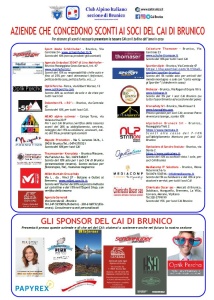I soci della nostra sezione hanno la possibilità di ottenere degli sconti presso queste aziende, che ringraziamo. Per ottenere gli sconti è necessario presentare la tessera CAI con il bollino dell’anno in corso. Ringraziamo di cuore anche gli sponsor e gli inserzionisti del Programma gite 2026. Leggi